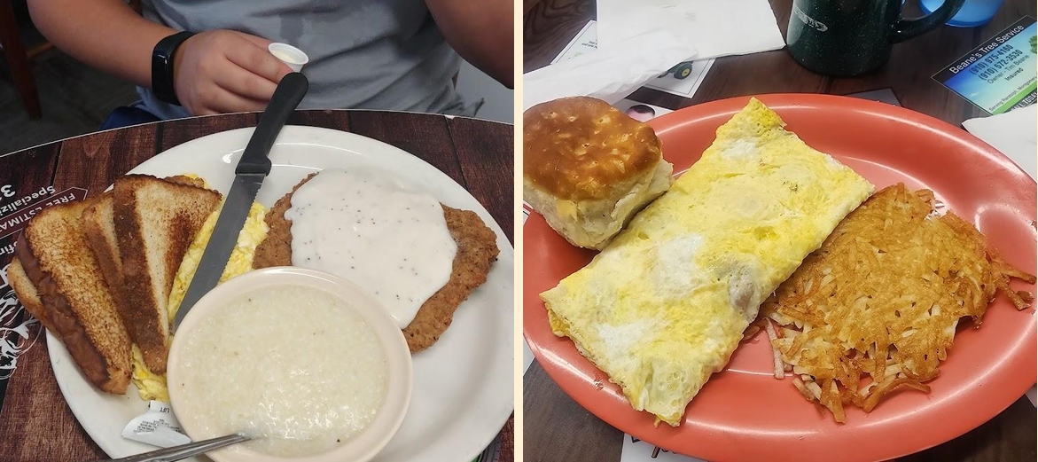 Popular choices include breakfast platters, hotcakes, and country ham biscuits. The omelets and sandwiches also receive great reviews. Don't miss the excellent desserts and local specialties.